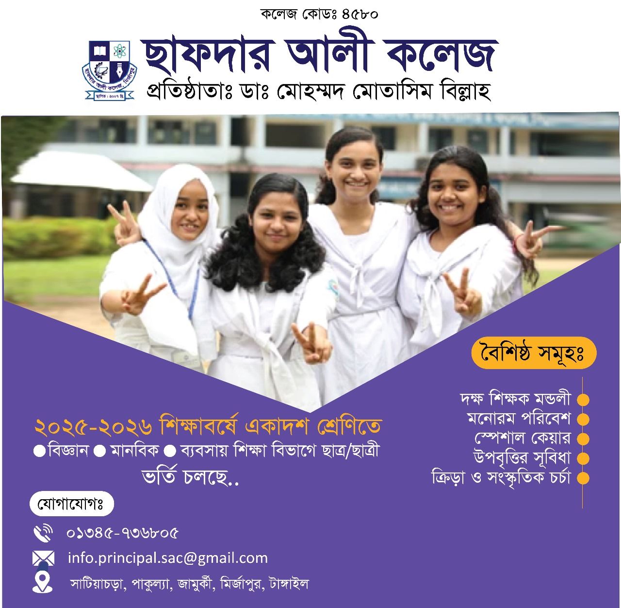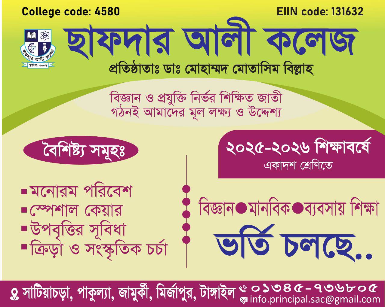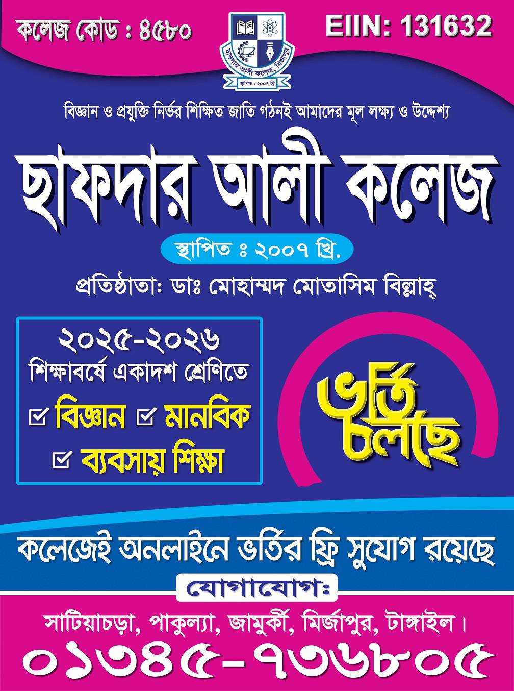 গ্রামীণ জনপদের শিক্ষাব্যবস্থাকে সময়োপযোগী ও প্রযুক্তিনির্ভর ধারায় উন্নীত করার দৃঢ় প্রত্যয় থেকেই ২০০৭ সালে ছাফদার আলী কলেজ প্রতিষ্ঠা করা হয়। আমাদের বিশ্বাস ছিল—ভৌগোলিক অবস্থান কখনোই শিক্ষার মান নির্ধারণ করতে পারে না; সঠিক দৃষ্টিভঙ্গি, পরিকল্পনা ও নেতৃত্ব থাকলে গ্রাম থেকেই গড়ে উঠতে পারে দক্ষ, আত্মবিশ্বাসী ও বিশ্বমানের প্রজন্ম।